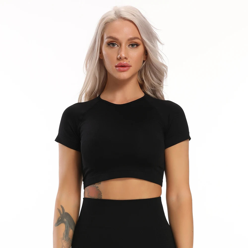 Fitness Women Short Sleeve Crop Top