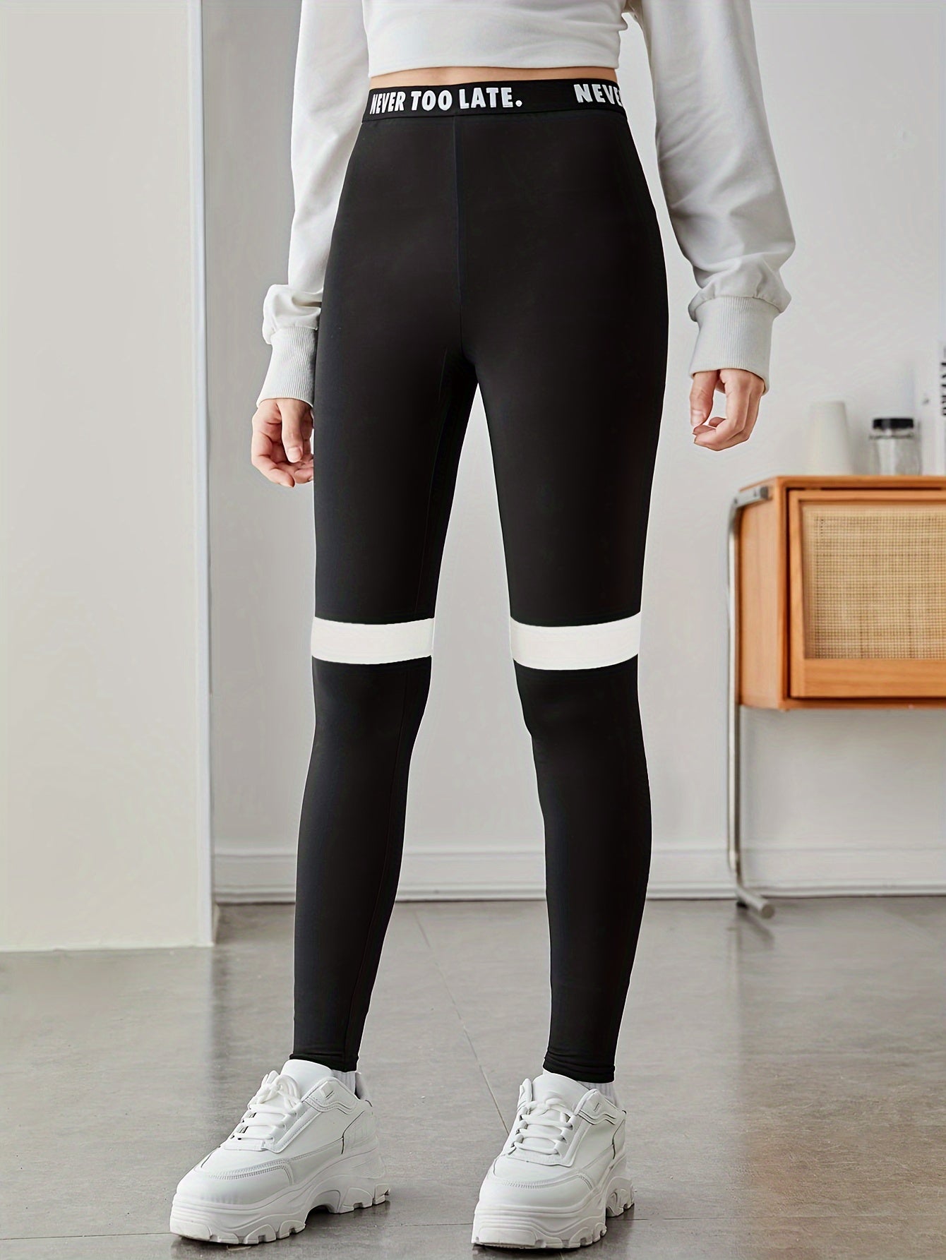 Girls' High-Waisted Tight-Fitting Leggings - Full-Length Yoga Pants with White 'LOVE' Lettering & Heart Print, Opaque Workout Tights for, Gym, Dance, - Machine Washable Slim-Fit Athletic Wear (Black), Perfect for Outdoor