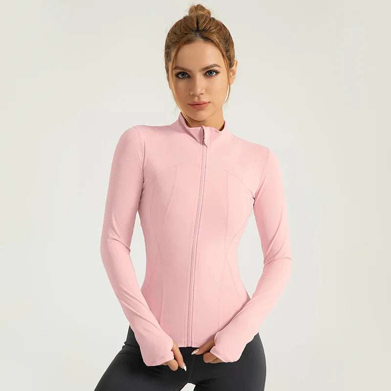 Nude yoga clothes, sports jackets, slim-fit nylon stand-up collar, tight-fitting jackets, tops, running fitness clothes