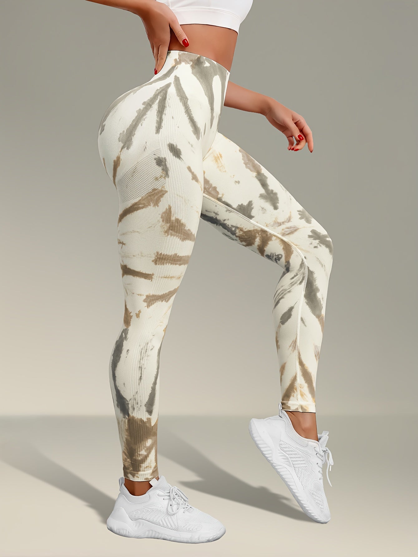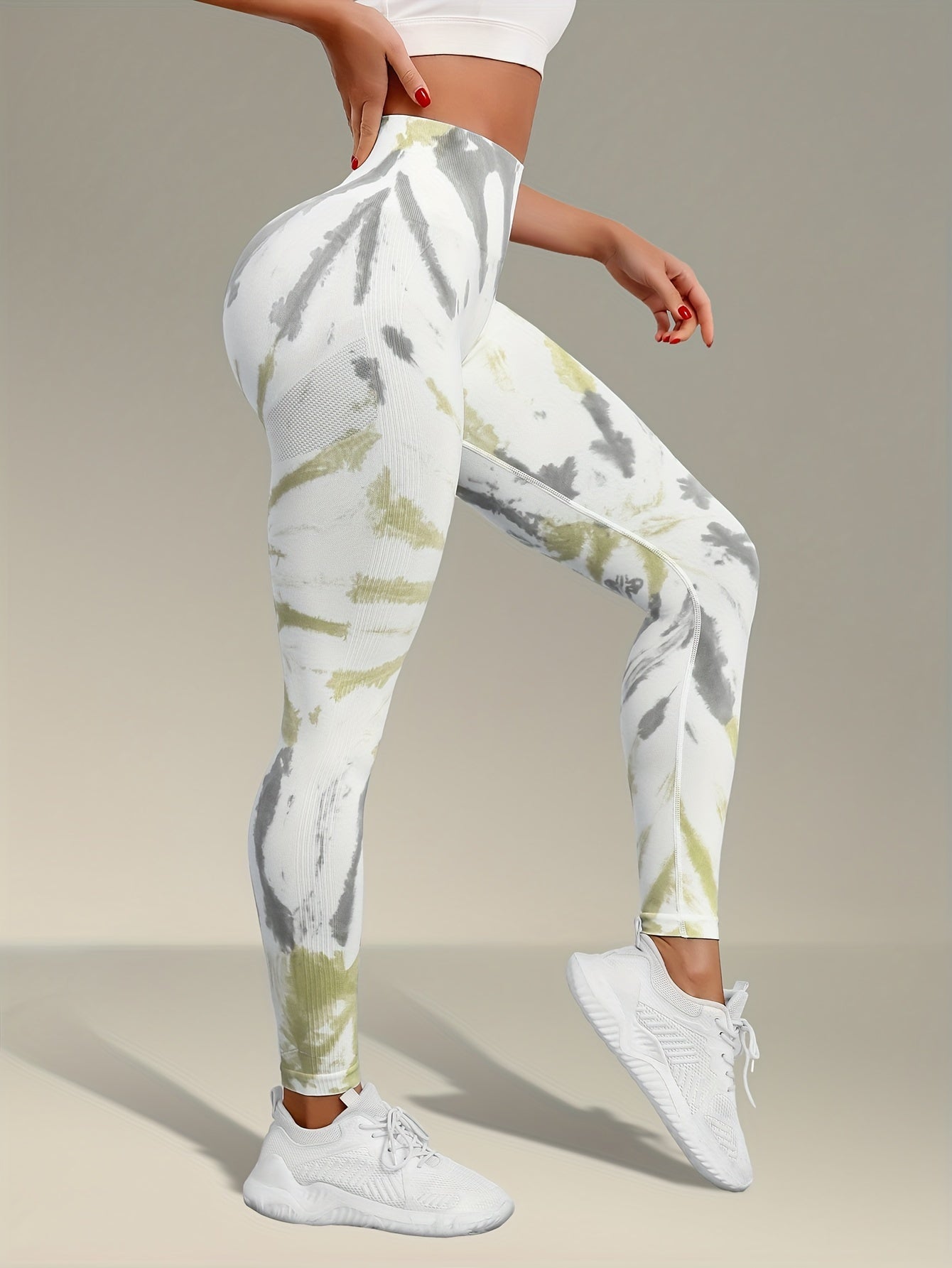 Stretchy Wide Waistband Yoga Pants - Tie Dye Women's Activewear - Running Fitness Sports Leggings
