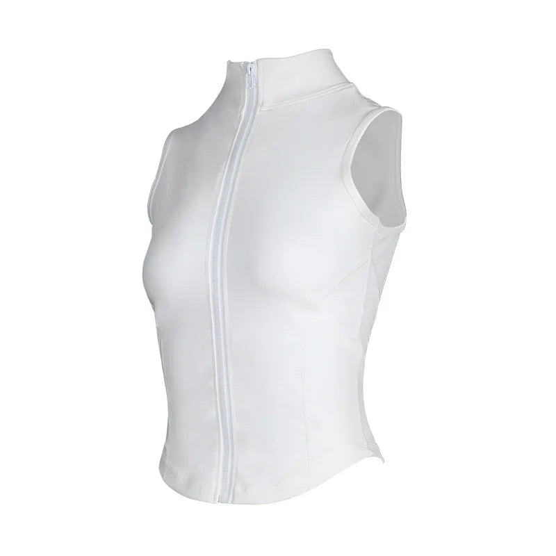 The sleeveless design allows for unrestricted movement, while the zipper feature adds a trendy touch and allows for easy wear. Whether you're stretching into a downward dog or breaking a sweat in a high-intensity session, this shirt provides the support and flexibility you need to perform at your best.