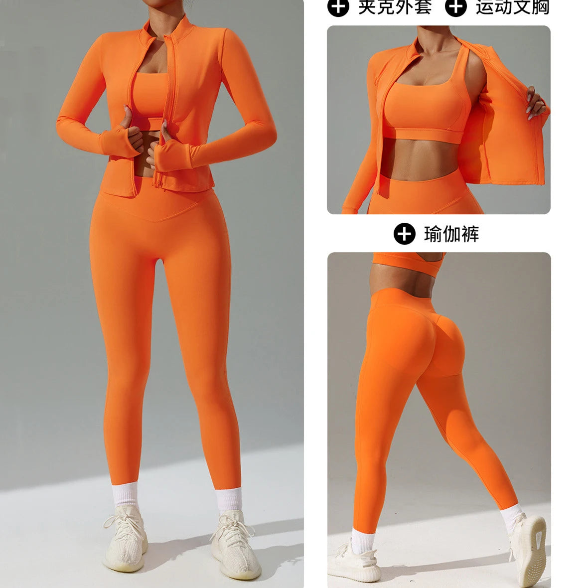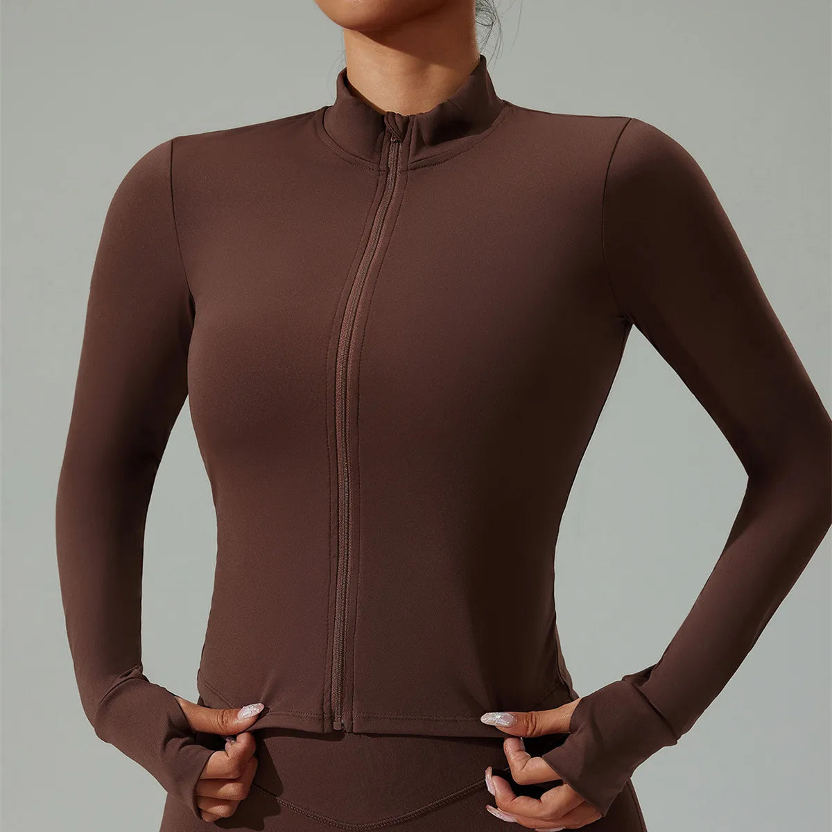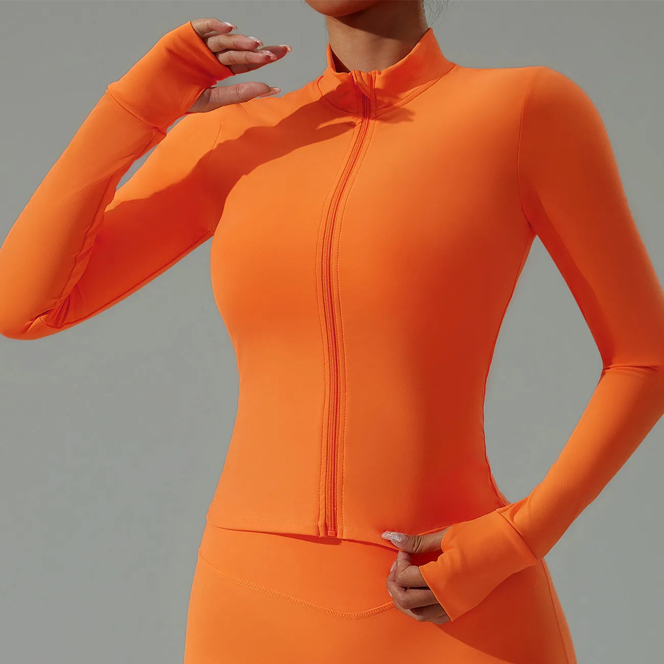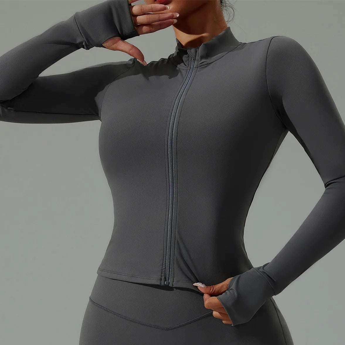 Women Zip Yoga Jacket Outdoor Running Sports Jacket Gym Push Up Fitness Long Sleeved Jacket Quick Drying Thumb Button Yoga Top